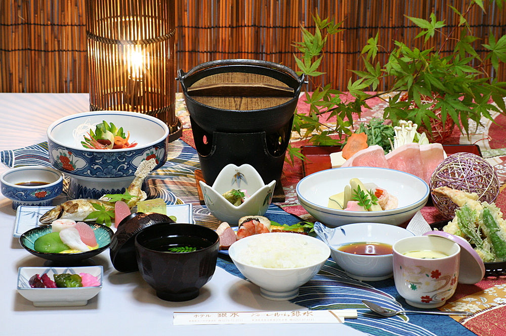 - 地元の旬の幸と日本海の海の幸を使い、料理長が仕立てる季節の味