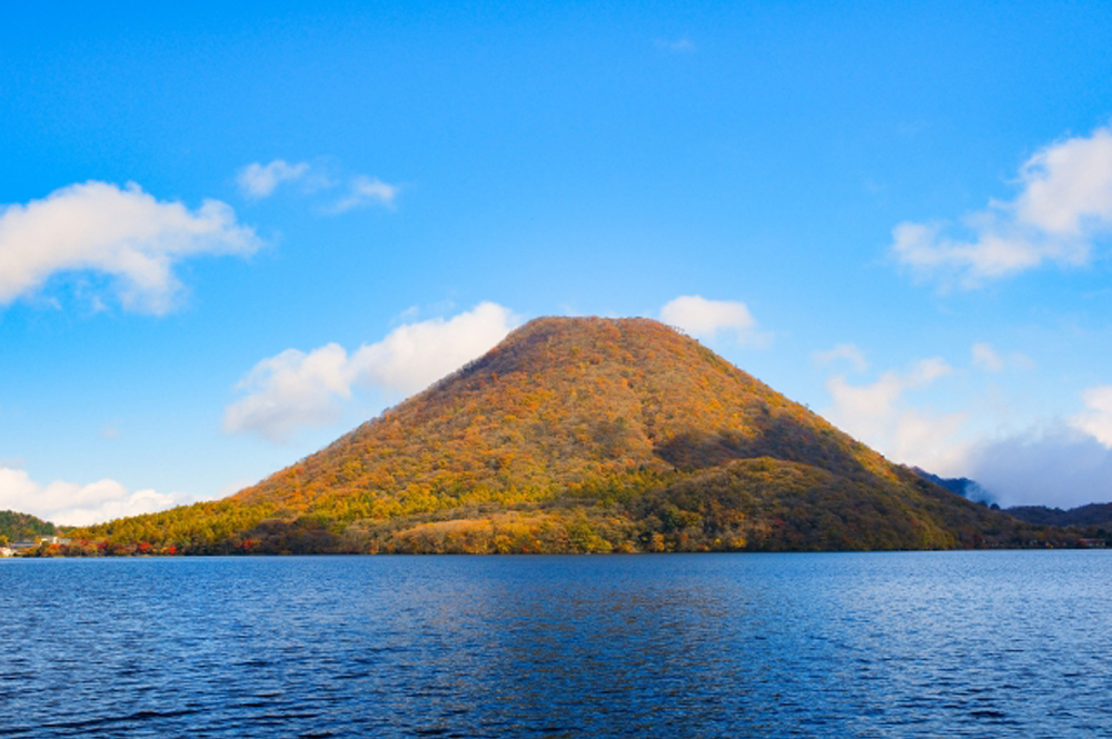 - 美しい榛名の山並みに囲まれた標高1100メートルの榛名湖は四季折々の彩りを見せる。